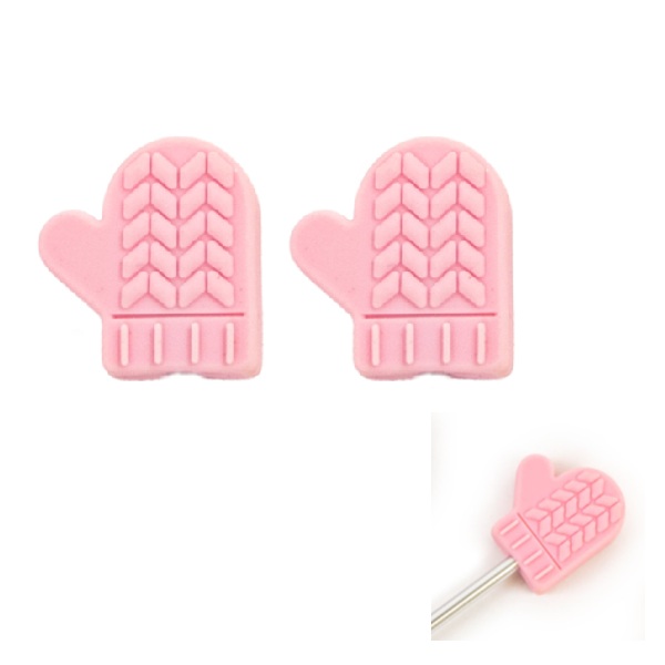 Paketissa 2 silikonista Katian puikkostopparia. Kuosina söpöt vaaleanpunaiset lapaset.
