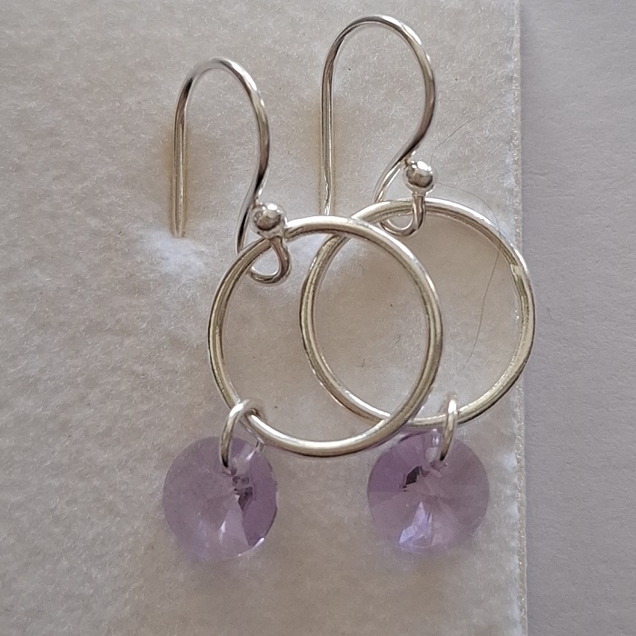 Silver Bar hopeakorvakorut rengas swarowski laventeli