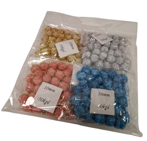 Akryylipallo kimalle vaaleat 10mm 4x50kpl