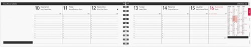 Kalenteriosa: vk 52 2025-vk 53 2026/2027. Suomenkielinen. Parikierresidottu. FSC®. Koko: 255×95 mm.