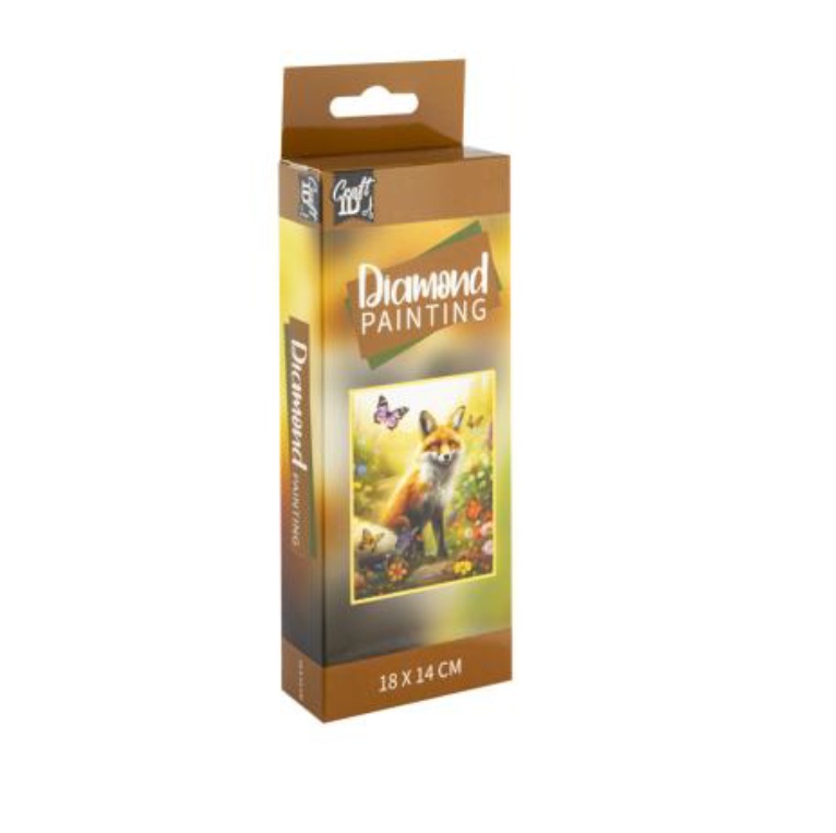 Timanttimaalaus tarvikepakkaus. Sisältää tarrapohjaisen kuvan, muovitimantit, asettelutyökalun, vahan ja rasian timanteille. Asettele timantit vahan ja asettelutyökalun avulla merkityille paikoille kuvaan.