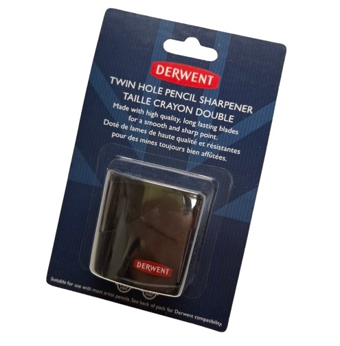 Derwent Dual Tip on kaksireikäinen laadukas säiliöteroitin. Teroitusaukkojen koot 11,5 mm ja 8,25 mm. Korkealaatuiset kestävät hiiliterästerät, jotka luovat kynään tasaisen ja terävän kärjen. Teroittimen muotoilu on ergonominen ja siinä on sävytetty säiliö ja käännettävä kansi. Ei sovellu pastelli ja hiilikynille.