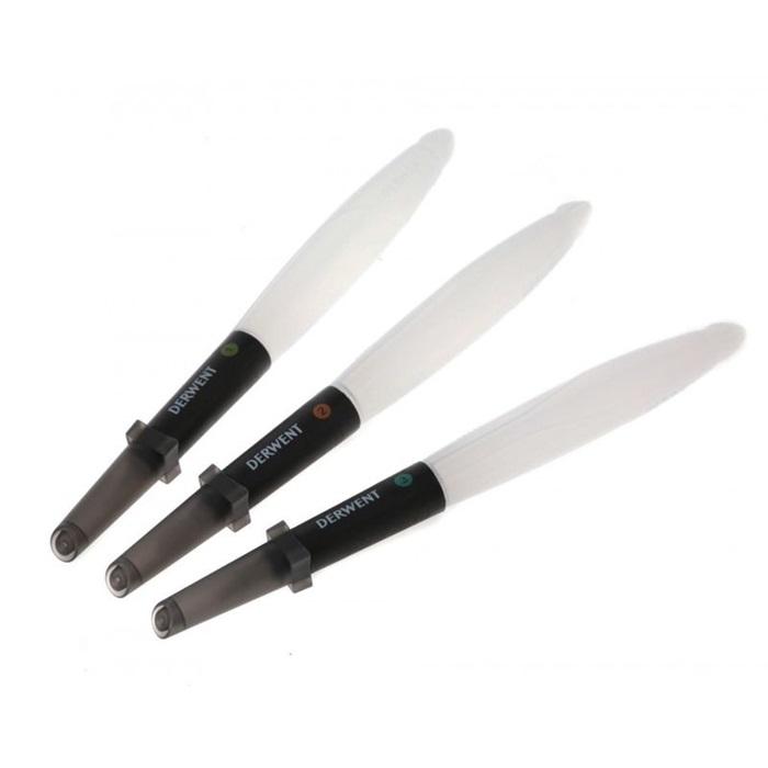 Vuotamattomat, kevyet ja kätevästi mukana tulevat Derwent Waterbrush-vesisäiliösiveltimet. 3 siveltimen lajitelma (fine, medium, leveä). Soveltuvat märkätekniikoille: vesi kulkeutuu säiliöstä pään läpi siveltimeen.