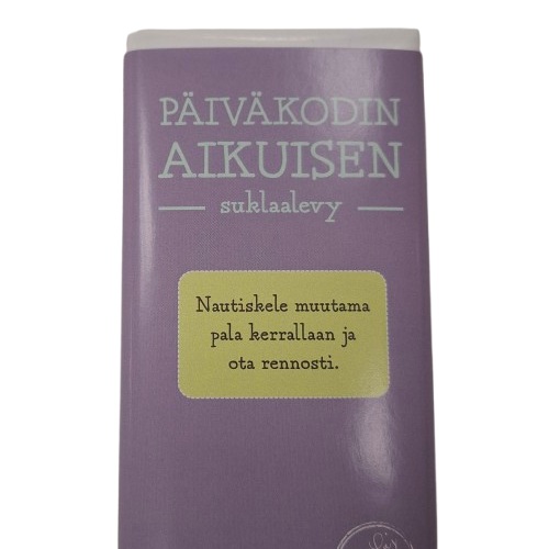 Lahjasuklaa lastenhoitajalle, lastentarhanopettajalle ja muulle päivähoidon henkilöstölle.