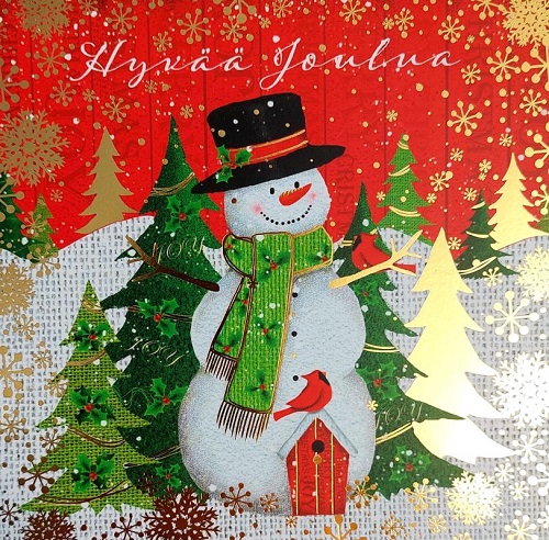 Etupuolella teksti Hyvää Joulua ja takapuolella Hyvää Joulua ja Onnellista Uutta Vuotta