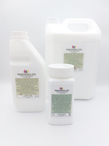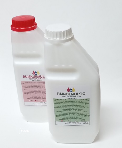 EMO-ruiskuemulsio ja -painoemulsio soveltuvat käytettäväksi vaaleille luonnonkuitukankaille.