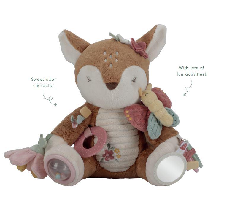 Halaa ja leiki! Tämä ihastuttava kauris lupaa enemmän kuin vain halauksia. Tutustu kaikkiin sen piilottamiin kiehtoviin aktiviteetteihin. Sen olkapäällä on rapiseva perhonen, heliseviä ääniä, renkaita sekä kosketeltavia materiaaleja ja kukkia. Ja kaiken leikin jälkeen, tämä suloinen peura inspiroi suloisimpia unia Keijupuutarhasta. Tuotteessa käytetty kierrätettyä GRS materiaalia. Ikäsuositus 0+