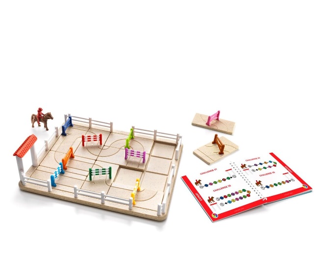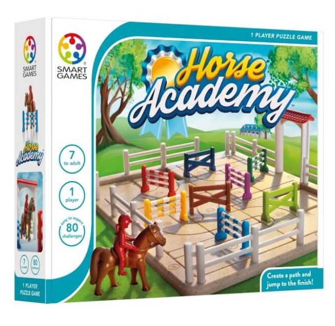Rakenna hevosellesi esterata lähdöstä maaliin niin, että ratsukko ylittää esteet haasteessa kuvatussa järjestyksessä. Esteet ovat erivärisiä ja ne on merkitty kirjaimilla. Joissain haasteissa hevonen ylittää saman esteen useampaan kertaa, joten sen tulee tehdä silmukka tai U-käännös. Hevonen kulkee reitillä vain yhteen suuntaan. Mitä pidemmälle etenet sitä enemmän joudut käyttämään päättelykykyäsi. SmartGames Horse Academy on hauska ja haastava peli koululaisille, nuorille ja aikuisille.