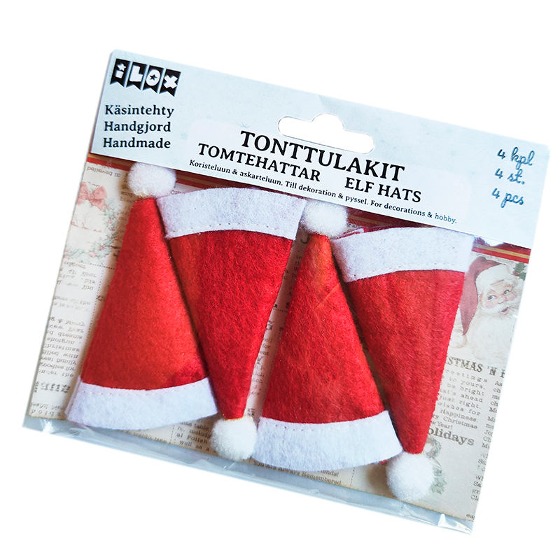 Ilox Tonttulakkikoriste 4kpl punainen huopa2 varastossa