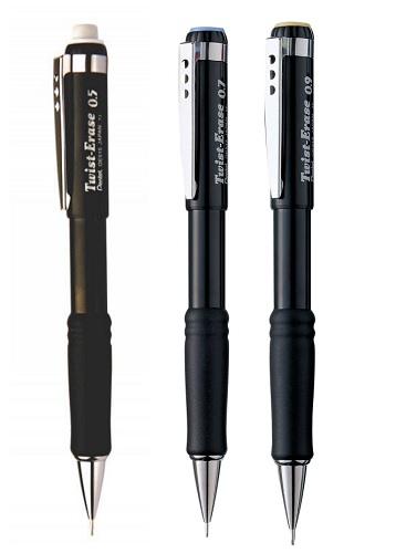 Lyijytäytekynä Pentel Twist-Erase musta kumigripillä