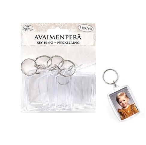 Läpinäkyvät avaimenperät askarteluun. Pakkaus sisältää viisi kappaletta kaksiosaisia, kirkkaita, avattavia avaimenperiä. Valitse mieluinen kuva, teksti tai muisto, liitä se avaimenperän sisään ja anna lahjaksi tai käytä itse! Persoonallinen avaimenperä kulkee aina mukana ja ilahduttaa joka kerta! Avaimenperät on valmistettu muovista ja niiden sisään voi laittaa haluamansa kuvan tai tekstin.