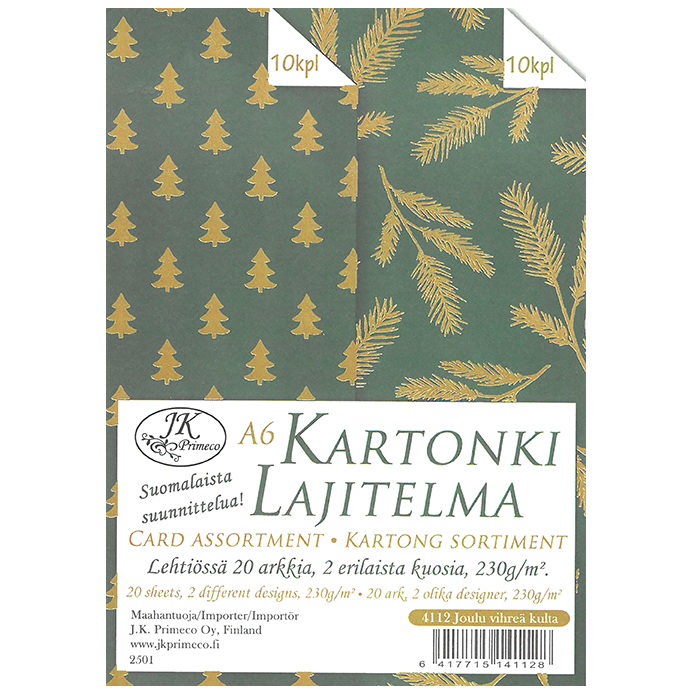 JK Kartonkilajitelma A6 Joulu vihreä kultafolio 20ark