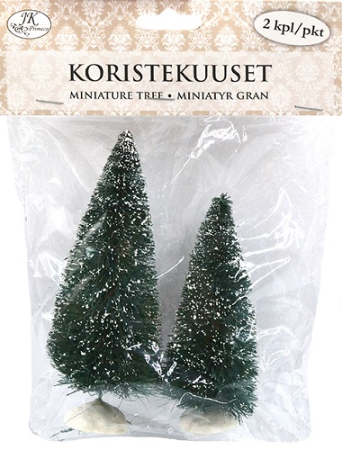 Pakkauksessa 2 kuusta, kuusien korkeus n. 11cm ja 14cm.