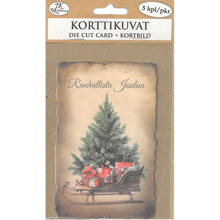 Korttikuvat askarteluun ja koristeluun. Pakkaus sisältää viisi kappaletta kartonkisia korttikuvia. Yhden korttikuvan koko on n. 12,5cm x 8cm.