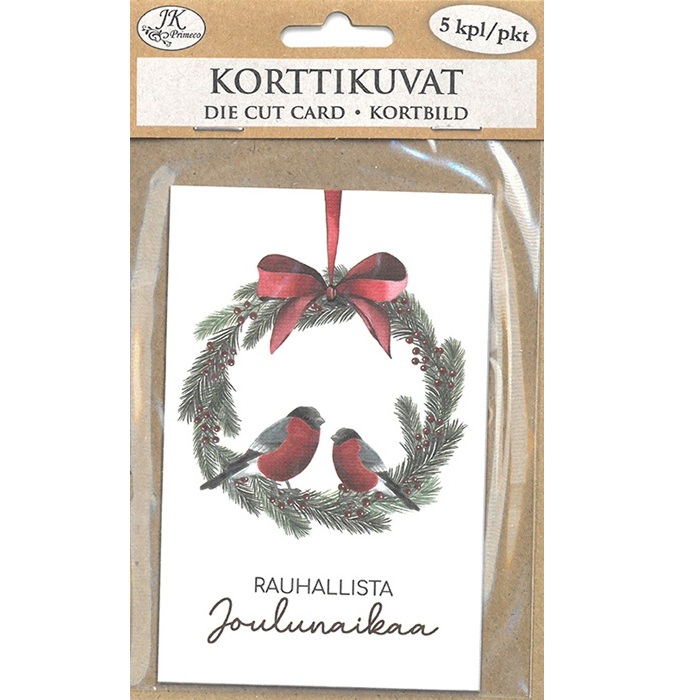 JK Korttikuva Lumo Punatulkut ja kranssi 5kpl