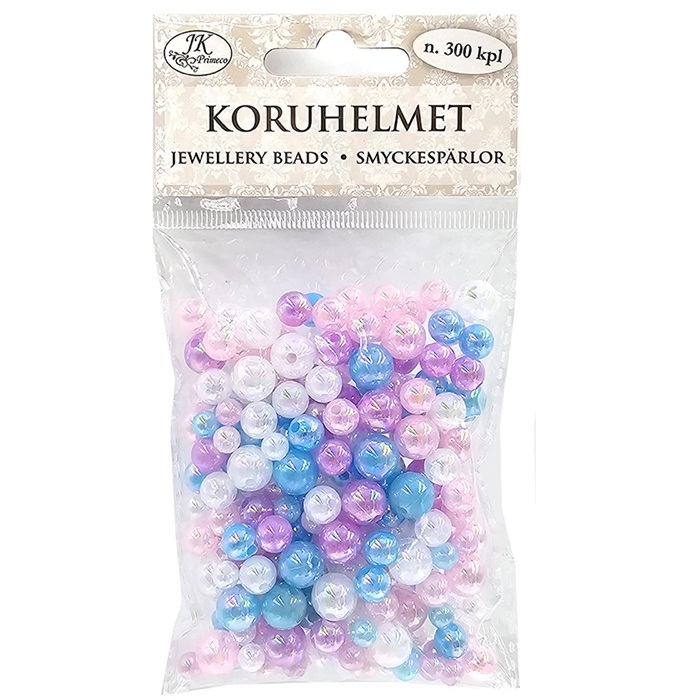 Pakkauksessa 300 koruhelmeä, helmien koko n. 6-10mm.