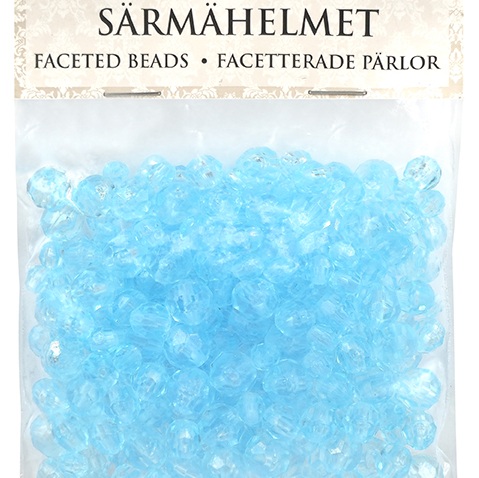Läpikuultavat särmähelmet koruaskarteluun. Pakkaus sisältää 63g eli noin 300 kappaletta muovisia fasettihiottuja särmähelmiä kolmessa eri koossa.
