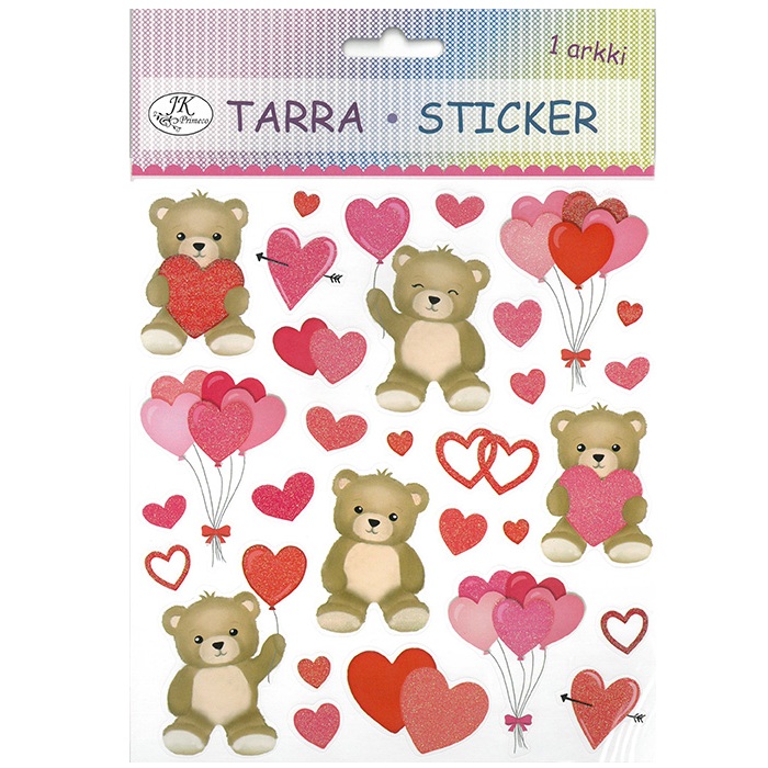 Tarra-arkki askarteluun ja koristeluun. Pakkaus sisältää yhden arkin erilaisia paperisia tarroja glitterillä.