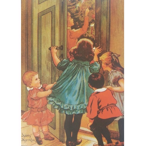 Joulukortti Jenny Nyström lapset ovellaJoulukortti Jenny Nyström lapset ovella