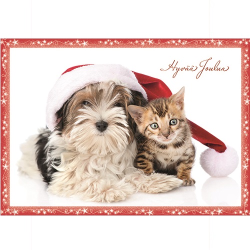 Joulukortti kissa ja koira 1-osainenJoulukortti kissa ja koira 1-osainen
