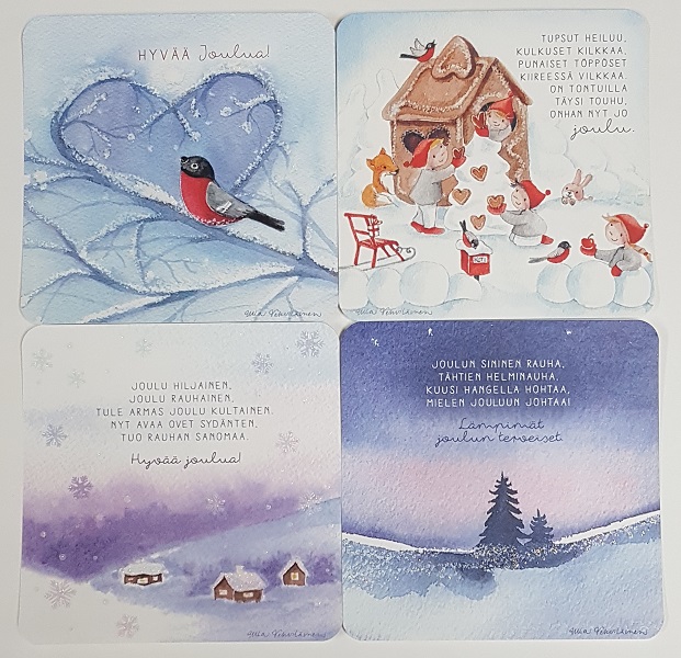 Joulukorttilajitelma Ulla Vehviläinen 4 korttia