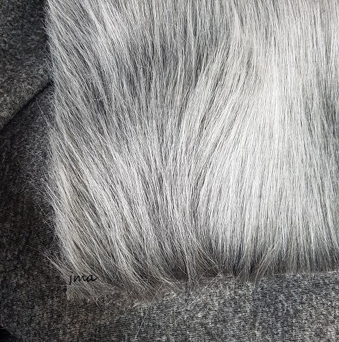 Kankaassa on n.5cm pitkä ja karva pölisee leikkausreunasta. Karvassa on vaihtelevaa väritystä.