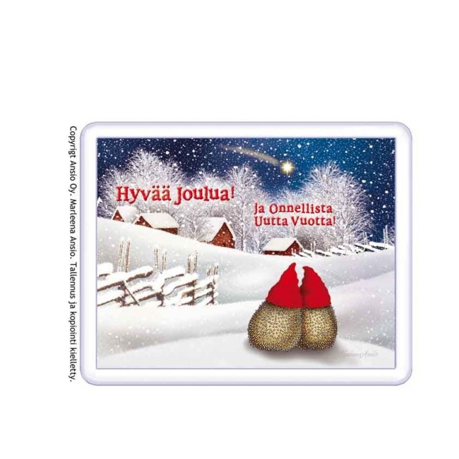 Marleena Ansio jääkaappimagneetti siilit talviyössä