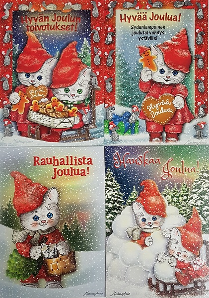 Marleena Ansio joulukorttilajitelma kissat 4 korttia