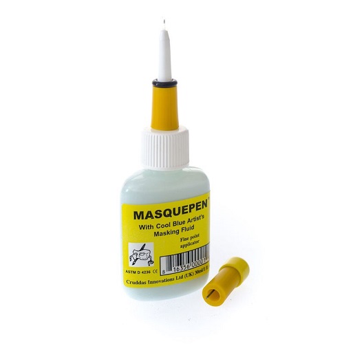 Tämä ALKUPERÄINEN, englantilainen Masquepen-maskikynä on ollut suuri menestys ja suosittu työväline taiteilijoiden, askartelijoiden ja käsityöläisten keskuudessa jo 10 vuoden ajan! Maskinesteen terävän nylonsuuttimen avulla rajaat kätevästi tarkkoja alueita kuten terälehtiä, mastoja, ikkunoita ja muita kuvioita. Maskineste lähtee helposti irti (esimerkiksi maalausveitsen avulla) ja rajaamasi alue tulee esiin. Masquepen-maskikynä koostuu polyeteeniä sisältävästä 30 ml säiliöstä vaaleansinistä rajausnestettä, terävästä 0.8 mm nylonkärjestä sekä sisäänrakennetusta asettimesta. Maskinesteen säilyvyysaika on noin 12 kuukautta, jonka jälkeen voit vaihtaa säiliön uuteen. Maskikynässä on tukkeutumaton korkkimekanismi: metallilanka hatussa estää pullon suutinta tukkeutumasta – neste ei kuivu eikä jätettä synny. Purista pulloa varovasti ja piirrä ohuita tai paksuja viivoja, pieniä pisteitä tai laajoja kuvioita.
