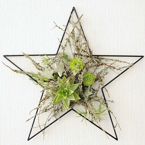Metallista valmistettu tähdenmallinen kranssikehikko. Käytä sellaisenaan ovessa tai ikkunassa, tai koristele valoilla ja oksilla.
