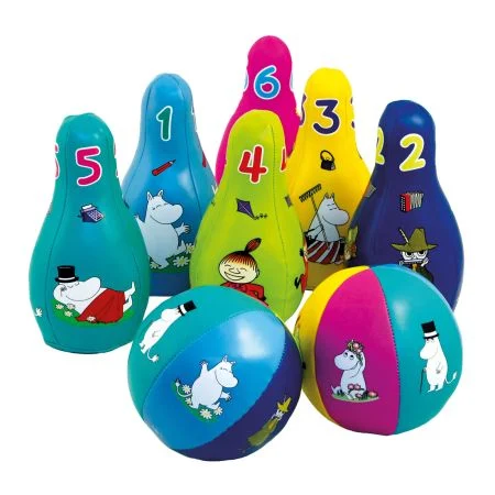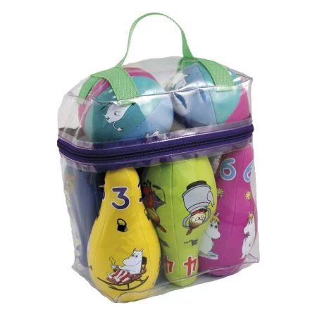 Pehmeät ja kolisemattomat keilat ja pallot. Pakkauksessa 6 keilaa, joissa numerot 1-6 sekä 2 palloa. Kätevä vetoketjullinen säilytyslaukku. Ikäsuositus: 1+.
