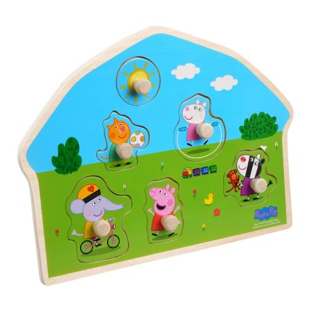 Muotoiltu puinen Pipsa Possu nuppipalapeli, jossa 6 palaa. Tuotteen koko 28×21 cm. Ikäsuositus: 2+.