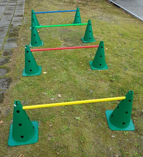 Käytä kartioita vaikka maalin merkkeinä tai rakenna esterata kartioista ja erikseen myytävistä liikuntasauvoista!