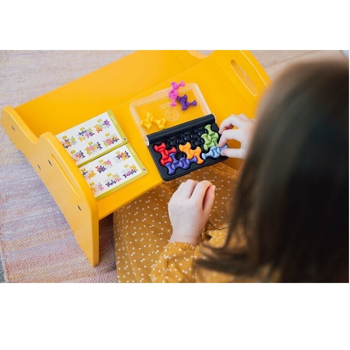 - Sisältö: pelilauta kannella, 10 värikästä palaa, haastevihkonen, jossa 120 haastetta sekä pelisäännöt
