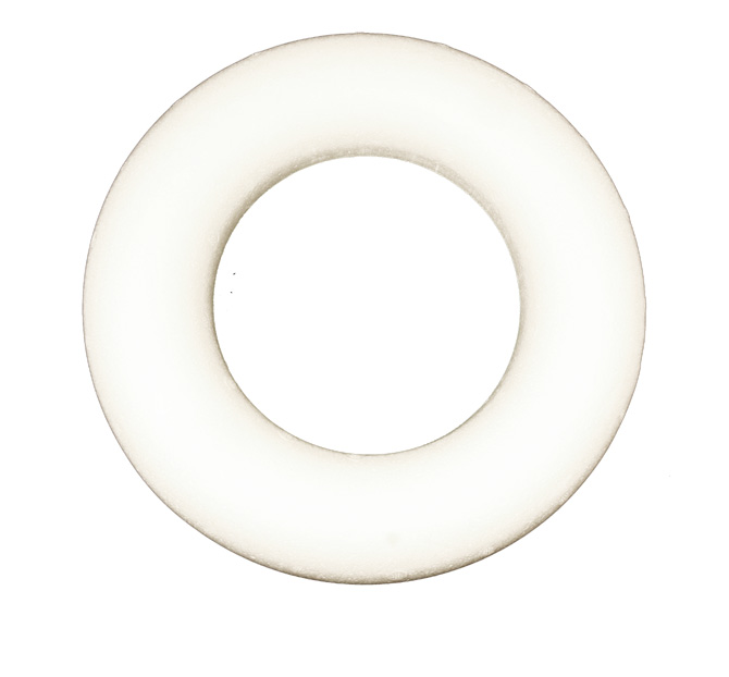 Styroxrengas, joka on etupuolelta pullea ja takaosa on litteä.
