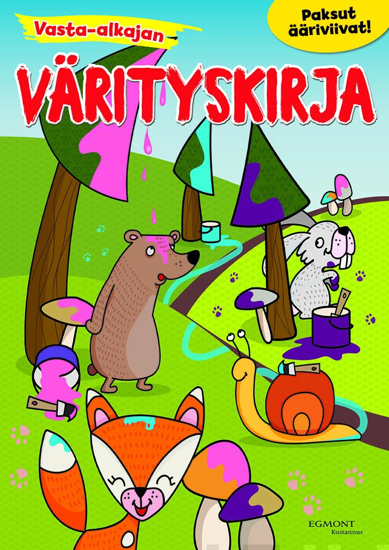 Värityskirja, jossa paksut ääriviivat ja isot kuvat. Uudistettu kansi. Sopii hyvin ensimmäiseksi värityskirjaksi pienemmille lapsille.